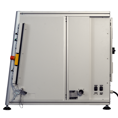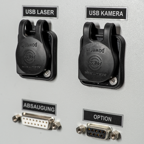 Der Laser wird beim öffnen der Schiebetür sicher abgeschaltet und ein NOT-Halt Vorrichtung ist ebenfalls vorhanden.