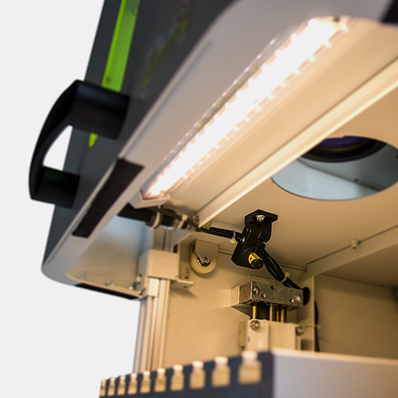 Der Laser wird beim öffnen der Schiebetür sicher abgeschaltet und ein NOT-Halt Vorrichtung ist ebenfalls vorhanden.